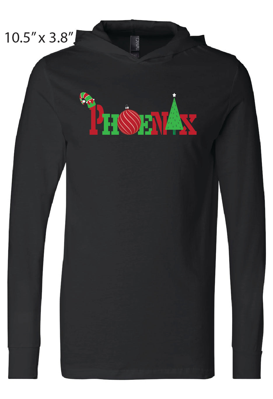 Black Bella Canvas Holiday Phoenix DTF Long Sleeve Shirt Hoodie